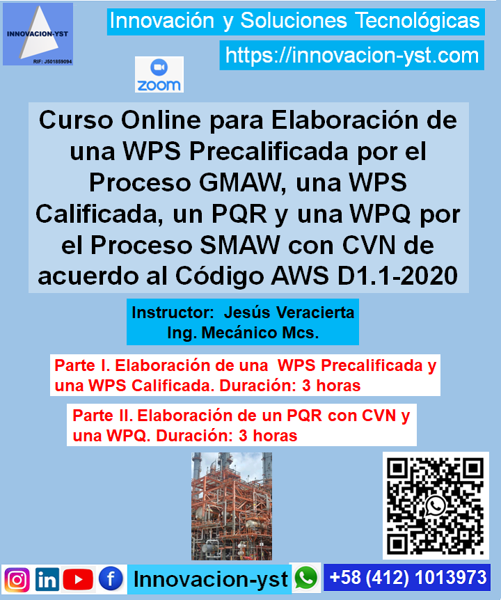 Curso para la Elaborar las Especificaciones de Procedimientos de Soldaduras (WPS) Precalificadas y Calificadas, Registro de Calificación de Procedimientos (PQR) y Registros de Caficacion de Habilidad del Soldador (WPQ) de acuerdo al AWS D1.1.
